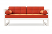 Каркас изделия выполнен из натурального и экологически чистого массива сосны. Чехол матраса не съемный, в комплекте две приспинные и две декоративные подушки-валика. Основанием служит реечное дно из массива сосны. На диване могут расположиться три взрослых человека, вес каждого до 120 кг. Данная мебель предназначена для закрытых помещений или веранд с крышей, прямой солнечный свет и дождь ей противопоказаны.