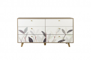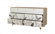 Широкий комод "Адажио" с шестью выдвижными ящиками и фасадом с цветным принтом. Комод установлен на высокие опоры.