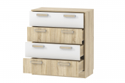 Комод с четырьмя вместительными ящиками на шариковых направляющих. Выполнен в комбинированном цвете.