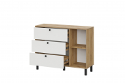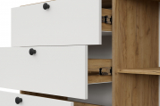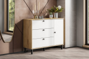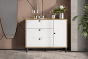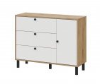 Комод КМ 25 дополнит современный интерьер комнаты. Вместительные ящики и полки за распашными дверьми позволят организовать место хранения белья и одежды, аксессуаров и других нужных предметов.