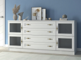 Комод "Квартет 32Ст", ЛДСП, рамка МДФ, вставка стекло простое, белый