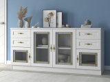 Комод "Квартет 44СтВ", ЛДСП, рамка МДФ, вставка стекло витраж, белый