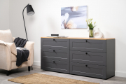 Комод 16.240 из модульной коллекции «Остин» дополнит интерьер гостиной или спальни. Комод широкий, с шестью вместительными ящиками. Выдвижные ящики на направляющих полного выдвижения. Корпус из ЛДСП 16 мм, с кромкой 1 мм. Фасады из МДФ 19 мм, с фрезеровкой. Ручки - пластик. Опоры - пластик, регулируемые. Максимальная нагрузка на комод - 10 кг. Максимальная нагрузка на 1 ящик - 5 кг.