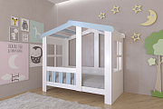 Кровать домик без ящика одноярусная "Астра", белый/голубой