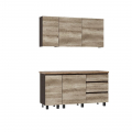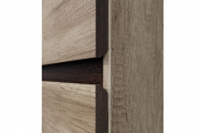 Кухня «Энигма» — это стильная модель, дизайн которой вдохновлен самой природой. Оттенки «дуб каньон» и «венге» выглядят очень натурально, словно созданы из настоящего дерева. Интегрированные срезы на фасадах заменяют традиционные ручки, они обеспечивают удобный захват, а также придают гарнитуру монолитный вид.