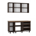 Роликовые направляющие 450 мм. Комплектуется столешницей «дуб кера» 38 мм (1200/400 мм). Максимальная нагрузка на ящик — 5 кг, на полку — 10 кг.