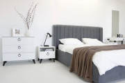 Главной особенностью этой кровати является ушки у изголовья, которые придают ей модный вид.
