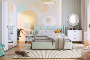 Спальный гарнитур "Ева К2" белое дерево/белый матовый/мята велюр